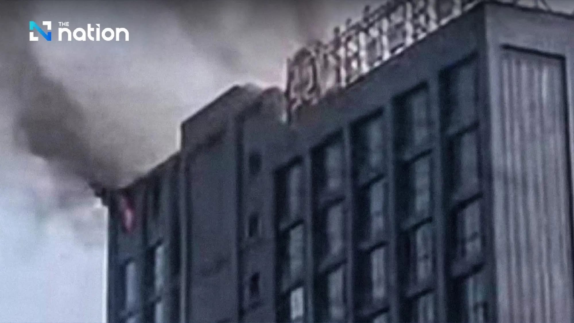 ထိုင်း-မြန်မာနယ်စပ် မြဝတီမြို့နယ်၊ ရွှေကုက္ကိုမြို့မှာ ယမန်နေ့ (မတ် ၂၀ ) မွန်းလွဲပိုင်းက ကျားဖြန့်ငွေလိမ်စင်တာ ၁၀ ထပ်အဆောက်အအုံတစ်ခုရဲ့ အပေါ်ဆုံးထပ်ကနေ သံသယဖြစ်ဖွယ် မီးစလောင်ခဲ့ပါတယ်။