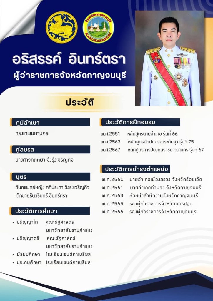 Athissorn Intharat သည် ယမန်နှစ် နှောင်းပိုင်းတွင် ဒုတိယပြည်နယ်အုပ်ချုပ်ရေးမှူးရာထူးမှ ကန်ချနပူရီပြည်နယ်အုပ်ချုပ်ရေးမှူးအဖြစ် စတင်တာဝန်ယူခဲ့သူ
